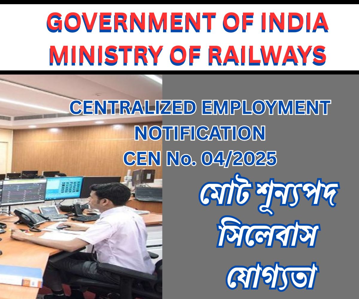 রেলওয়ে রিক্রুটমেন্ট বোর্ডের তরফ থেকে সেকসন কন্ট্রোলার পদে নিয়োগের জন্য বিজ্ঞপ্তি প্রকাশ করেছে।আগ্রহী প্রার্থীরা অফিসিয়াল ওয়েবসাইটের মাধ্যমে আবেদন করতে পারবে।